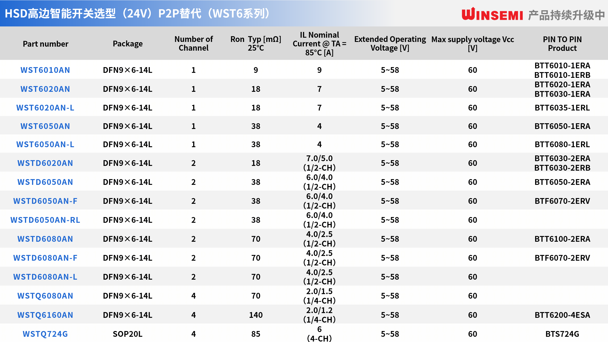 表 | 穩(wěn)先微高邊開關(guān)WST6系列產(chǎn)品選型